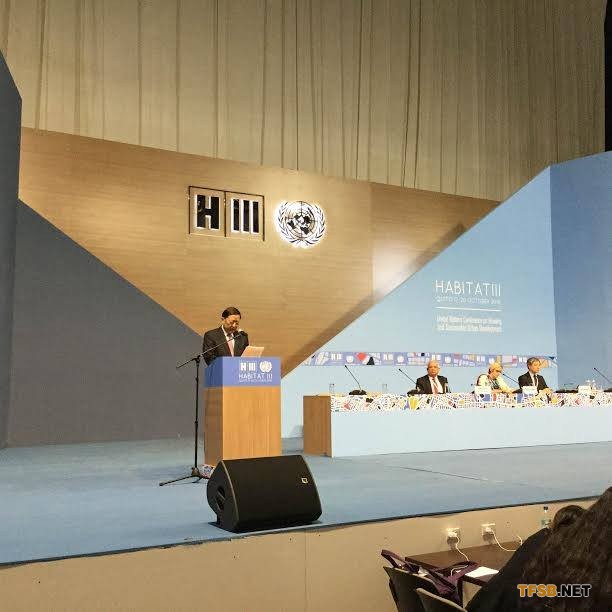 第三届联合国住房和城市可持续发展大会(简称“人居三”)10月17日在厄瓜多尔首都基多市正式开幕。 中国住房城乡建设部部长陈政高作为中国政府特别代表早些时候在联合国第三次住房和城市可持续发展大会(以下简称“人居三”大会)全会上发表主旨演讲指出,中国城市和乡村的人居环境在过去20年间获得巨大改善;展望未来,中国将积极推进可持续的城镇化进程,推动《新城市议程》在中国的有效落实,并继续改善国民的人居环境质量。