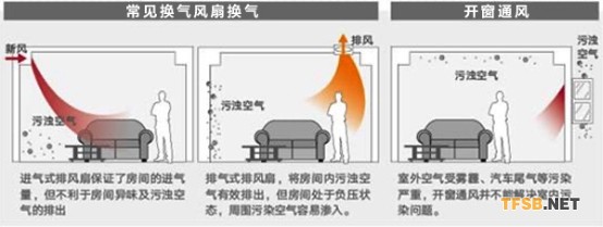 排气扇是通过风扇将房间内的空气排出,由于房间内空气变少,就会通过关闭的门窗风渗透进房间进行补充,会一定程度的加强室内换气,但在补充室外空气的同时也会把室外的污染 (例如PM2.5,汽车尾气等)带入室内。