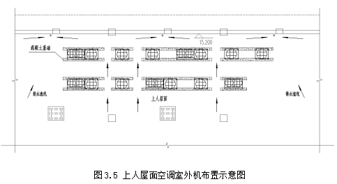 为使屋面排水流畅,减少屋面雨水排放的压力,在屋面空调室外机基础布置时,采用基础间断布置的方式。既减少了混凝土基础的使用量,降低成本;又减轻了屋面设备基础的荷载,减少了结构荷载压力;还可兼顾排水,可谓一举多得。