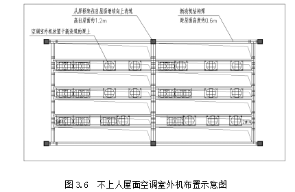 对原结构设计图纸进行复核,不上人屋面的活荷载为0.5kN/m²,对于此类屋面的空调外机摆放,需结合结构安全性、荷载传递路径及施工可行性进行综合设计。