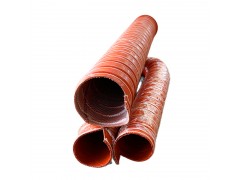 耐高温硅胶软管,是由玻璃纤维布,不燃高分子材料,硅橡胶,高弹性钢丝,高温线, 经室温硫化复合而成。