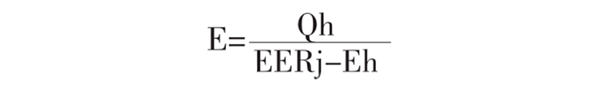 式中,E为中央空调的冷源系统节电量(千瓦时/月),EERj为中央空调的冷源系统基期耗电量(千瓦时/月),Qh为中央空调的冷源系统基期供冷量(千瓦时/月),Eh为中央空调的冷源系统节电量(千瓦时)。