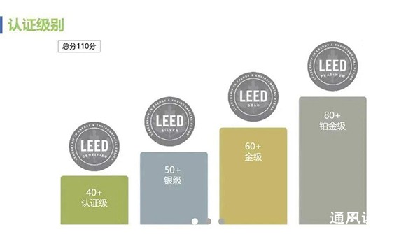 LEED标准对以上五个方面在建筑中的比重进行量化打分,最后按照总得分多少将绿色建筑分为四个级别:认证级、银级、金级、铂金级。按照该标准,达到认证级以上的建筑就称为“绿色建筑”。LEED标准把“绿色建筑”这一比较抽象的概念变成了一个可以执行的标准,对推动建筑业的可持续发展具有重要意义。不管在什么地区,该组织制定的绿色建筑标准,都是源自“可持续发展战略”和生态环境维持这样的原则。