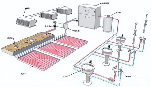 水系统空调主要由室内机和室外机两部分构成。其中,室外机通常被称作冷热水机组,室内机一般叫风机盘管,二者通过给水管相连。其工作原理是,室外主机负责提供空调所需的冷/热水,这些水经由给水管系统输送至室内,在室内末端,水与空气进行热交换,以此调节室内温度,满足人们不同的需求。